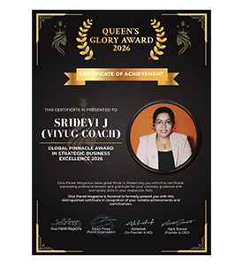 SriDevi J is a visionary Business Transformation Expert and Executive Coach with over 15 years of experience. Recognized as an Outstanding Educator (SIWAA 2025)
